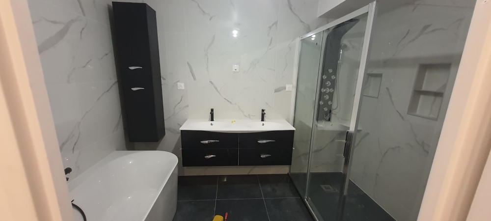 Création et installation entière de sdb, avec enduits, placo, luminaires, pose d'armoire, double lavabos, douche à l'italienne et baignoire à AMIENS